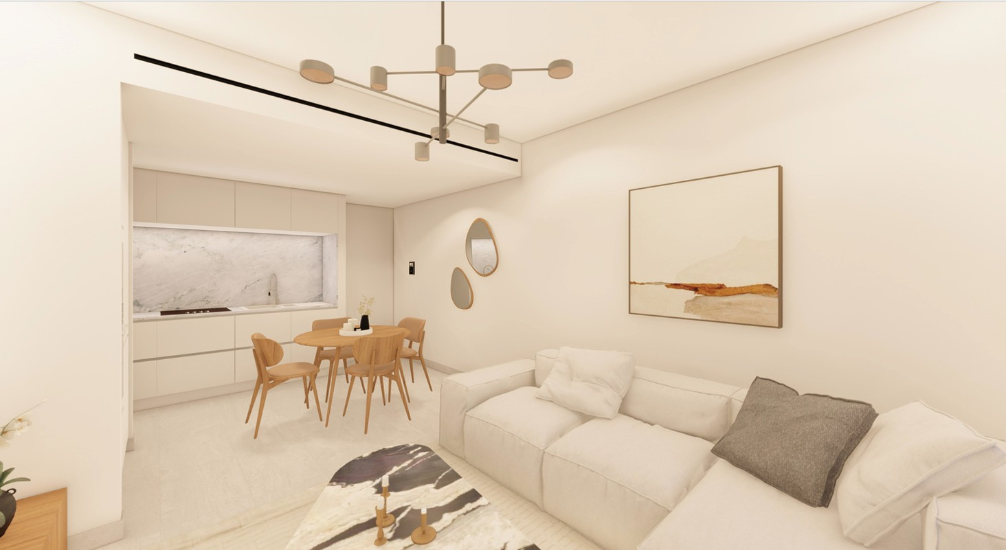 For sale is a spacious off-plan apartment with a total internal area of 64 m², set on the second floor of a well-designed three-story building with elevator access. This modern property features one bedroom and one bathroom, making it an ideal choice for individuals or couples seeking comfort and privacy.