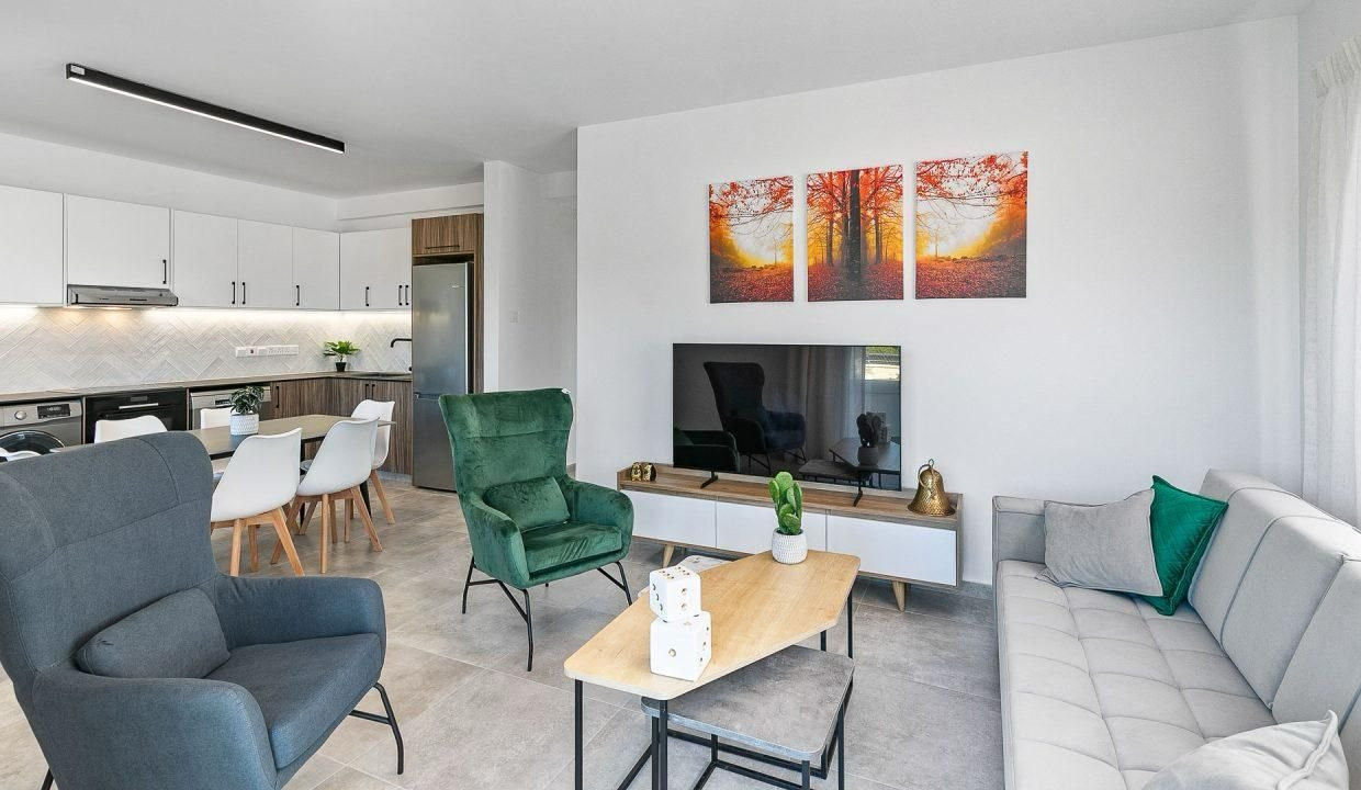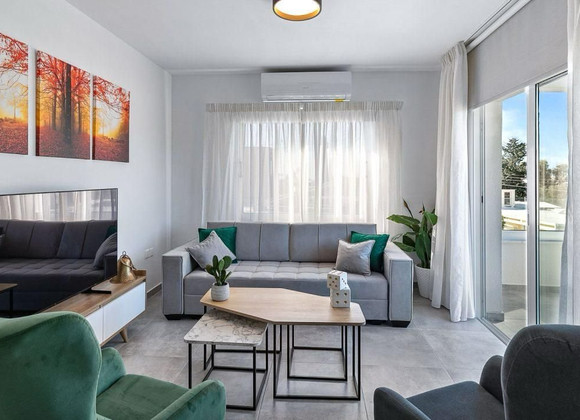 For sale: Spacious three-bedroom apartment in the sought-after area of Geroskipou. This well-maintained ground floor home offers 120 square meters of comfortable living space, ideal for families or those looking for extra room. The property features a bright, open-plan living and dining area, a fully fitted kitchen, two modern bathrooms, and generous bedrooms with built-in wardrobes.