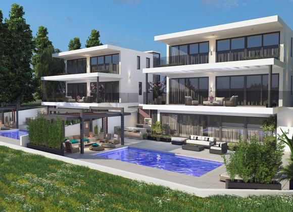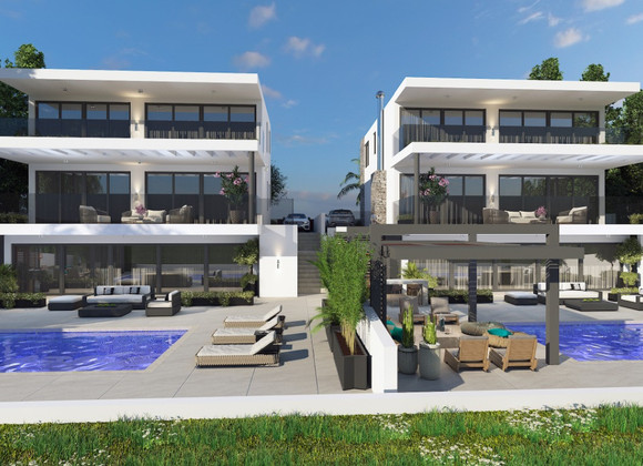 For sale: This spacious villa under construction offers modern living in the sought-after area of Geroskipou. With a generous internal space of 413 m², the home features five comfortable bedrooms and three stylish bathrooms. Set on a large plot within a secure gated complex, it is designed for both comfort and privacy.