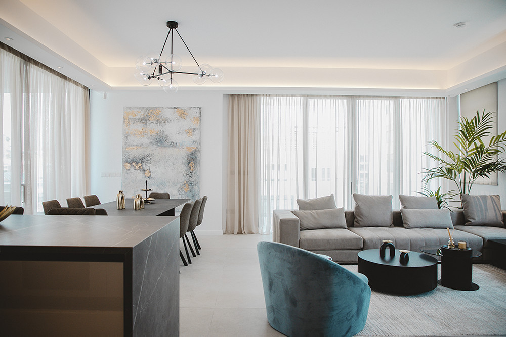 This spacious apartment offers 157 m² of comfortable living space on the third floor of a modern six-story building with elevator access. The home features two generously sized bedrooms, two stylish bathrooms, and an open-concept layout, creating a bright and welcoming atmosphere. A central air conditioning system ensures a comfortable environment year-round.