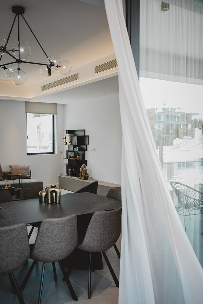 Inside, you will find an open living and dining area with plenty of natural light. The apartment includes a central air conditioning system, ensuring comfort throughout the year. Each bedroom offers ample storage, while the bathrooms are tastefully finished with quality fixtures.