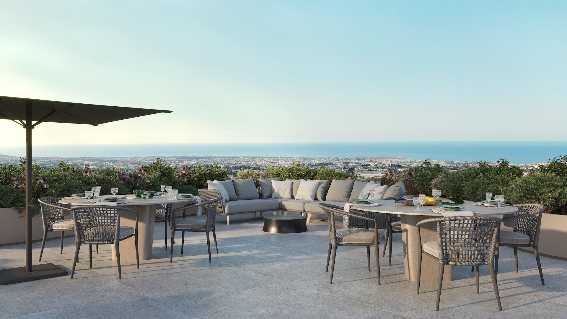 This property features an open-plan living and dining area, complemented by a central air conditioning system and efficient underfloor heating, ensuring year-round comfort. The apartment holds an impressive energy efficiency A rating, keeping utility costs low. The bedrooms are generously sized, and both modern bathrooms are finished to a high standard.